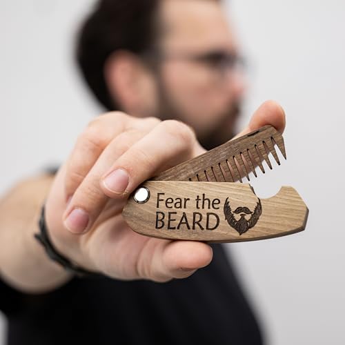 FOLDING DESIGN FOR EASY GROOMING: This folding beard comb for men is a compact and practical tool that folds easily to fit in your pocket, making it ideal for on-the-go beard care.