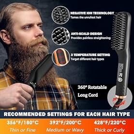 Not Hot Enough? Wouldn’t Straighten the Beard and Hair? – With PTC Heater Technology offers the fastest and stable heat distribution up to 428℉(220°C) in 2 minutes.The ionic mens beard straightener for men offer 3 heat settings from 356℉ to 428°F which is suitable for most beard or hair types-soft, thin, thick, or curly. The high-quality material and premium gift box would be top gag gifts for men, fiance, dad, father, coworkers, employees,gifts for men who have everything etc.