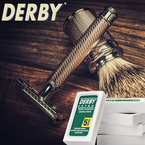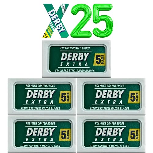 25 “Derby Extra Professional” Double Edge Razor Blades for straight razor State of the art spluttering equipment coat the perimeters of each blade in chromium-ceramic tungsten and platinum for a in reality unmatched shave each time. Enjoy a smooth and clean shave each time with Derby Extra Professional Doble Edge Razor Blades! Chromium-Ceramic-Platium-Tungsten and Polymer Coated Edges Derby Professional Double Edge Razor Blades are designed to be incredibly durable and long-lasting, constructed from the very best quality steel strip of their hallowed Swedish factory. Derby Professional Extra Double Edge Razor can be utilized with any double edge safety razor or can also be split in half and used on a brutal razor.