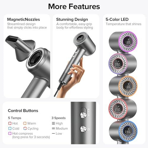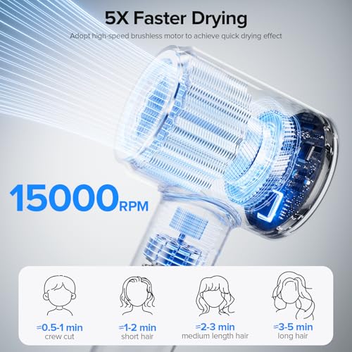 Hair Dryer, 150000 RPM Brushless Motor with 5...