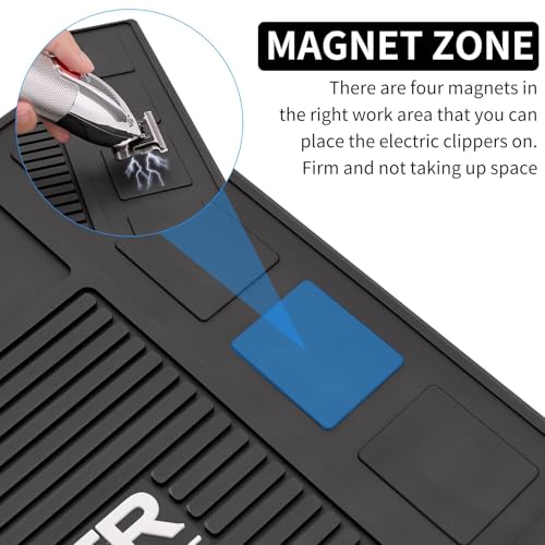【Assists in keeping Station Organized】Save time and stay organized with the 4 magnetic spaces for clippers and 4 dedicated spaces for barbering and salon tools. The mat is divided into different work areas, making it easy to organize your workstation and put your entire barber tools in the correct place.
