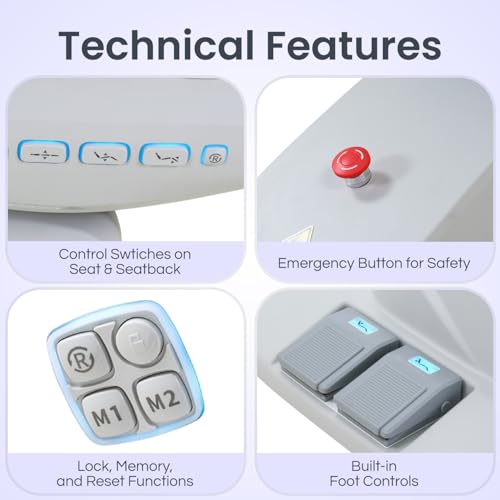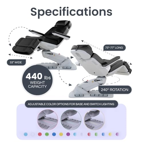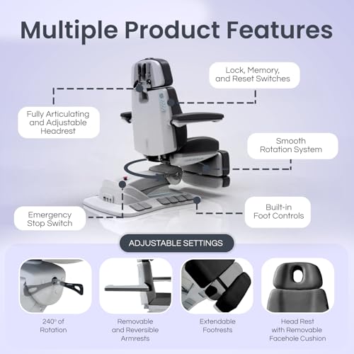 COMPREHENSIVE CONTROL SYSTEM: Features intuitive back keep an eye on panel with memory settings, reset button, protected locking function, safety sensors, emergency stop switch, customizable LED lighting, fully adjustable headrest and removable armrests. This professional facial chair for esthetician use combines safety features with convenience, offering the ultimate service bed experience for both clients and technicians.