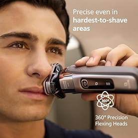 From the number 1 electric shaver brand¹, now with up to a 5-year warranty⁴. Philips Norelco i9000 is the up to date among Philips electric shavers for men with a Triple Action Lift & Cut system that cuts hair up to -0.00mm, even in hardest-to-shave areas − for long-lasting closeness. Fully flexible and compact heads with skin stretching patterns dynamically adapt to every curve of your face for 20% more precision even in hard-to-shave areas². The Dual SteelPrecision Blades rotate 360 degrees to cut hair in any direction with 7 million motions per second to make sure an efficient shave on a 1, 3, or 7-day beard, making it a perfect beard trimmer for men. SenseIQ technology powered by AI delivers intelligent skin comfort personalized to you. The most advanced Hydro SkinGlideCoating delivers 50% smoother gliding² on the skin to shave and manscape with less friction and maximum comfort. Keep your foil shaver clean in just 1 minute with a powerful Cleaning Pod for hygiene and maintenance, 10x better than cleaning with water only³. Enjoy a first-class shaving experience and shave dry or wet, even in the shower. Fully charge your face shaver within 1 hour the usage of the included USB-A cable. In a hurry? Plug in your device for 5 minutes and get enough power for 1 full shave. Philips drives sustainability in all aspects of product creation. The brand’s ambition is to reduce waste and minimize the number of USB adapters out there. ¹ Source: Euromonitor International Limited, retail value RSP, per body shavers category definition, 2024 data, research conducted in December 2024 ² In comparison to its predecessor ³ Comparing shaving debris after the usage of cleaning fluid vs. water in the cartridge ⁴ 2 years + 3 years warranty upon registration within 90 days on Philips.com