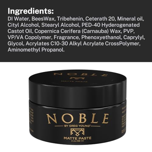 LONG-LASTING FORMULA : Noble By Greg Young mens hair product styling paste resists all the elements like wind and humidity. Our product is easy to reactive and re-style all day. Noble is the perfect styling matte paste to give you a look to be proud of