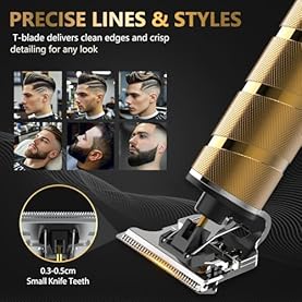Precise T-blade Shaving: Achieve a barber-quality shave with our titanium T-blade trimmer, designed with skin-friendly R-shaped edges to prevent pulling or irritation. Enjoy fast, smooth cutting for precise fades and sharp lines, perfect for hair, beard, mustache, and sideburns. Ideal for both home use and professional barbers.